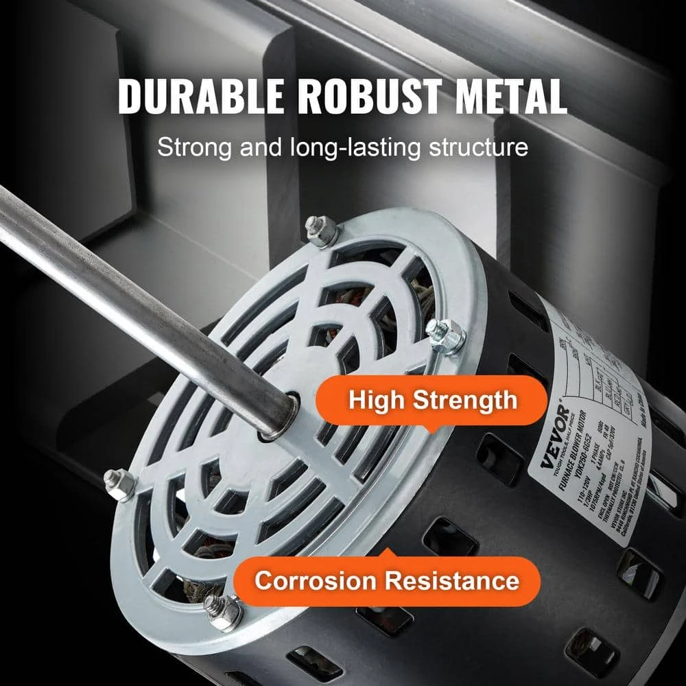 1/3 HP Furnace Blower Motor. VEVOR 1/3 HP Furnace Blower Motor-Perfect companion for your indoor climate needs. 110 to 120-Volt voltage, 4.4 Amp current, 48 frame size, 5.2 in. shaft length, 0.5 in. shaft diameter, CW/CCW dual rotation, with 5μF/370-Volt capacitor, 11 in. hold hoop. A perfect motor for air conditioning duct systems and furnaces.