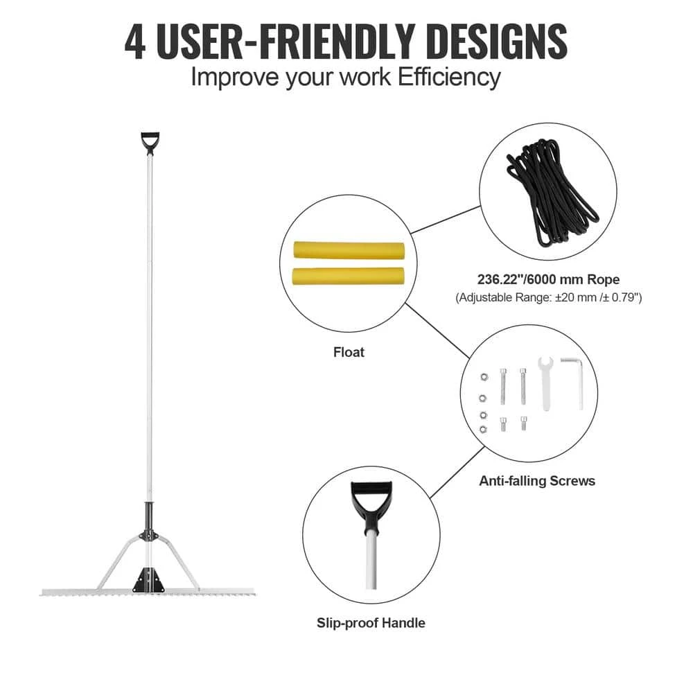 - Versatile for land and water: whether leveling road edges, clearing pond leaves, tidying garden weeds or even cleaning floating debris in pools, our landscape rake perform well in all tasks