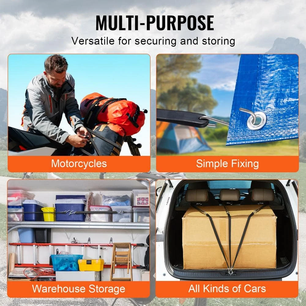 VEVOR Bungee Straps-Your Ultimate Solution for Secure Storage and Transport. Discover the versatility and reliability of VEVOR Bungee Straps, designed to meet all your securing needs. With exceptional adaptability, these elastic bungee straps can easily handle items of various shapes and sizes, making them perfect for both home and outdoor use. Their durable construction features outstanding weather resistance, ensuring long-lasting performance even in harsh conditions.