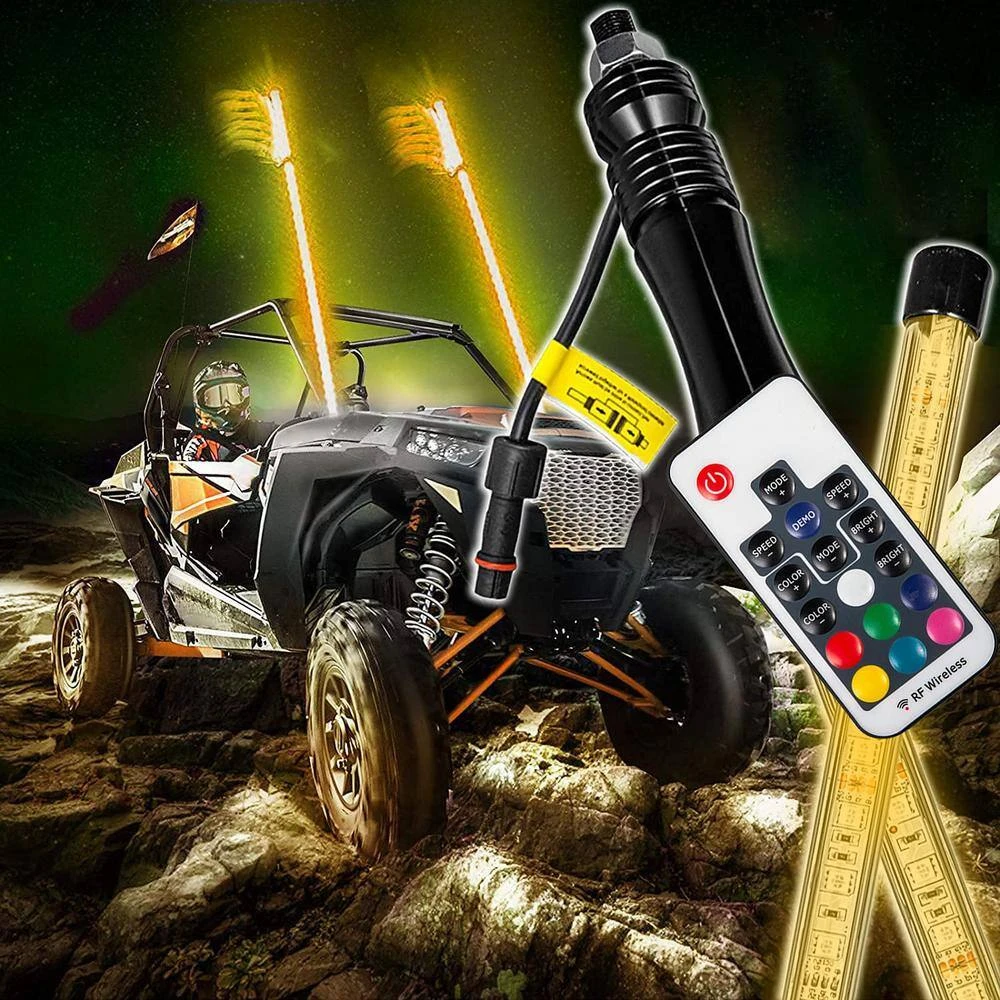 - Visible LED and RGB color – quality and visible LED whips feature color changing, producing 20 color combinations, 5 brightness levels, and 23 flash patterns, and 10 flash speed options, giving you a cool driving experience