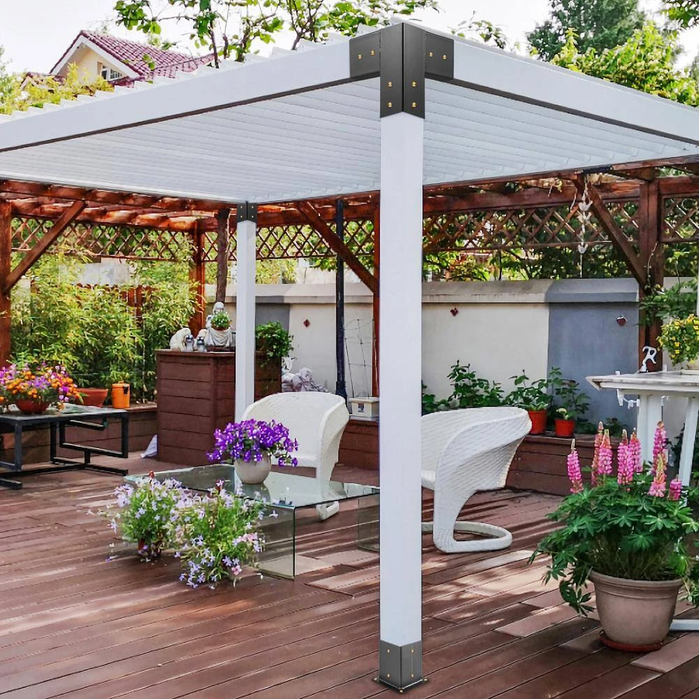 - 3-Way Right Corner Brackets: 3-Way right angle corner bracket has enhanced the stability of the pergola, even in inclement weather. The pergola brackets post features weather-proof performance and a stable frame, so you do not have to worry about the attack and damage to storms and wind