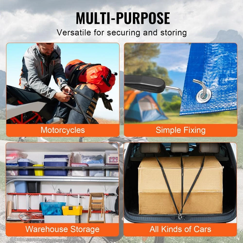 VEVOR Bungee Straps-Your Ultimate Solution for Secure Storage and Transport. Discover the versatility and reliability of VEVOR Bungee Straps, designed to meet all your securing needs. With exceptional adaptability, these elastic bungee straps can easily handle items of various shapes and sizes, making them perfect for both home and outdoor use. Their durable construction features outstanding weather resistance, ensuring long-lasting performance even in harsh conditions.