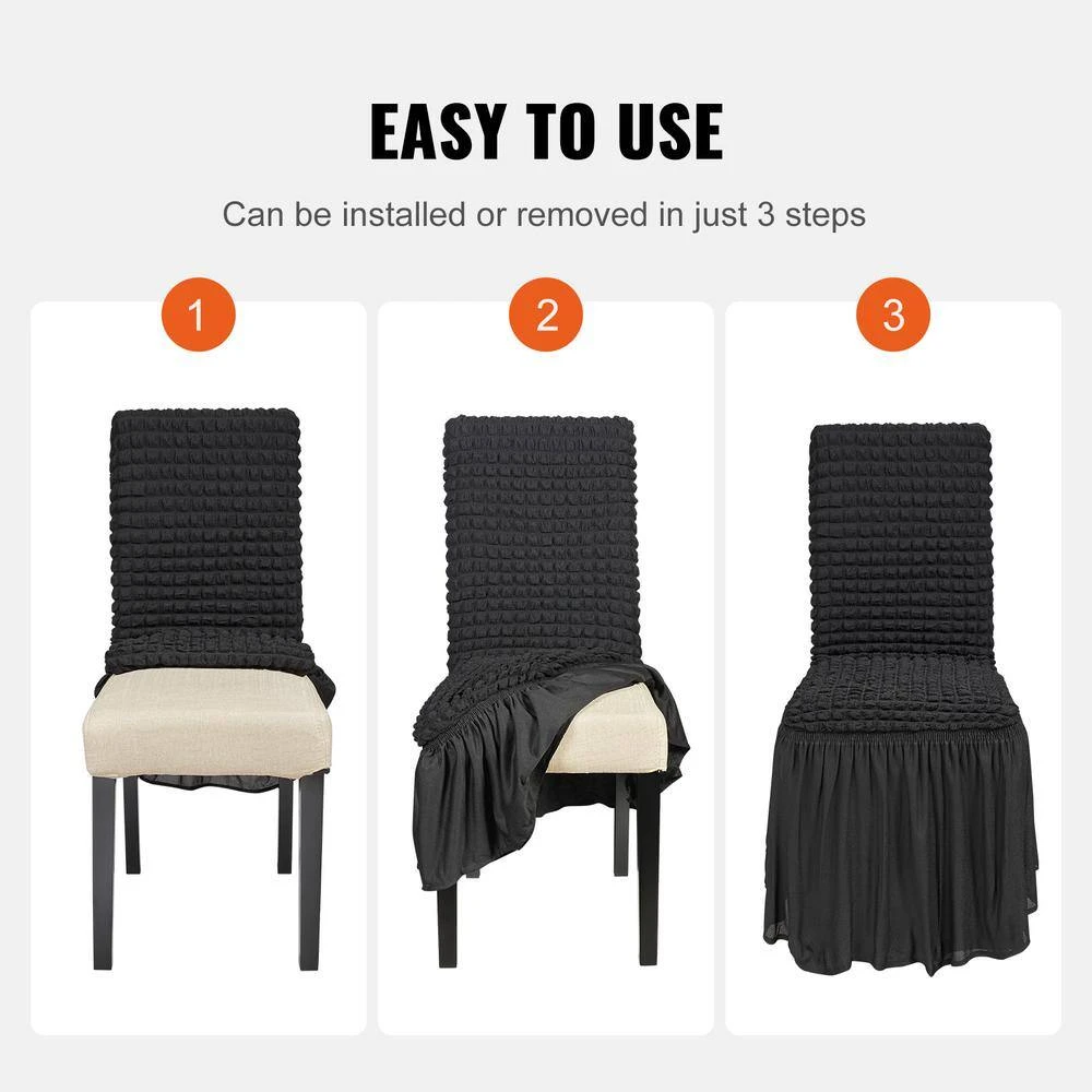 - Premium material: color: black; quantity per box: 4-pieces; material: 95% polyester fiber and 5% spandex, durable fabric and quality stitching offer additional comfort and elasticity, universal spandex folding chair covers are designed to protect your chairs from accidental spills, pet scratches, everyday stains, and tears, making them ideal for both indoor and outdoor events