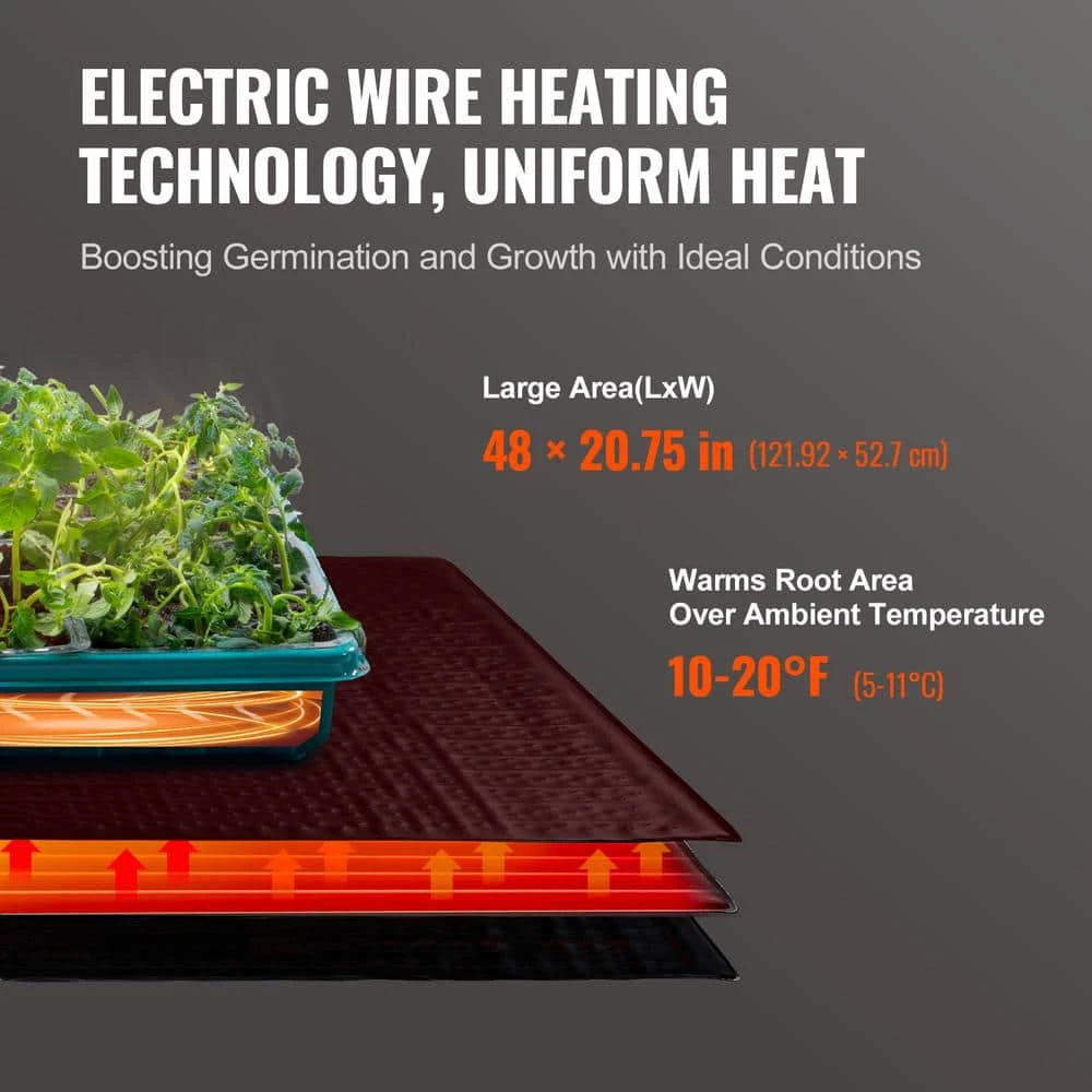 - Fits standard trays: fits standard trays: sized for 1020 standard trays, it operates at 17.5-Watt for energy efficiency, available in 2 sizes, 1020.75 in. and 4820.75 in., it’s versatile for plant germination, indoor gardening, home brewing and heating glass containers, meeting diverse daily needs