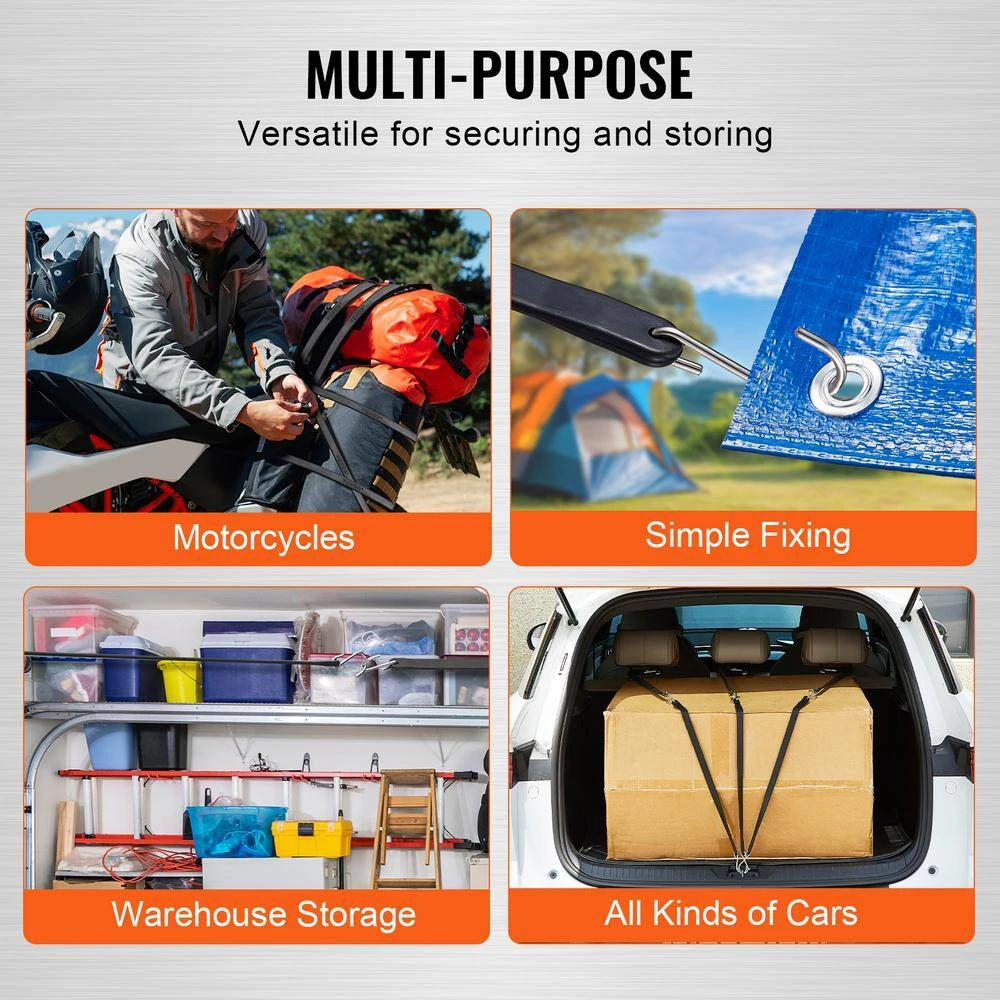 VEVOR Bungee Straps-Your Ultimate Solution for Secure Storage and Transport. Discover the versatility and reliability of VEVOR Bungee Straps, designed to meet all your securing needs. With exceptional adaptability, these elastic bungee straps can easily handle items of various shapes and sizes, making them perfect for both home and outdoor use. Their durable construction features outstanding weather resistance, ensuring long-lasting performance even in harsh conditions.