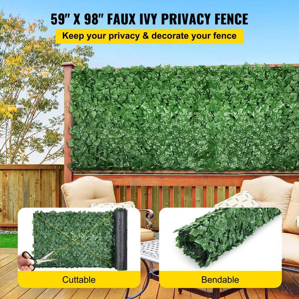 - Realistic ivy screen: size: 59 in. x 98 in. our artificial ivy privacy fence screen features realistic and vibrant green leaves for better decoration, the dense leaves provide you with a more private space, also bring freshness and naturalness to your life
