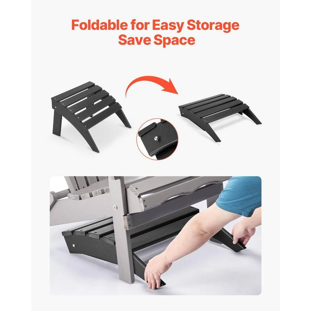 Our Adirondack Ottoman, Meets Your Various Needs.The Adirondack Ottoman is made of durable HDPE material with corrosion-resistant 304 stainless steel screws. It’s foldable for easy storage, installs in 3 steps, and features a comfortable 13in. height with a 43-degree angle. Ideal for various outdoor settings.