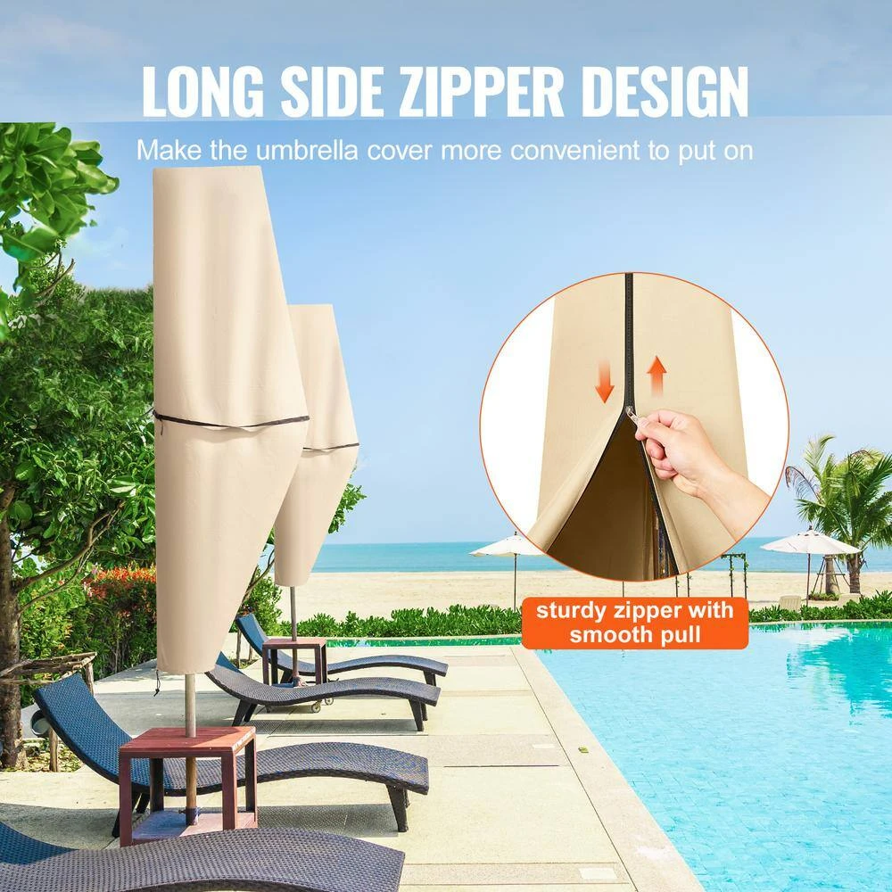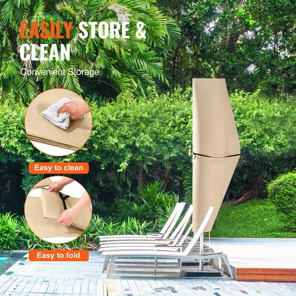 - Easy to use: this parasol umbrella cover has a long zipper design on the side, which makes the umbrella cover more convenient to wear and easy to clean, wipe it with a damp cloth or rinse it with water, then dry it under the sun; foldable and easy to store, when not in use, it can be put into the organizer bag, does not take up space