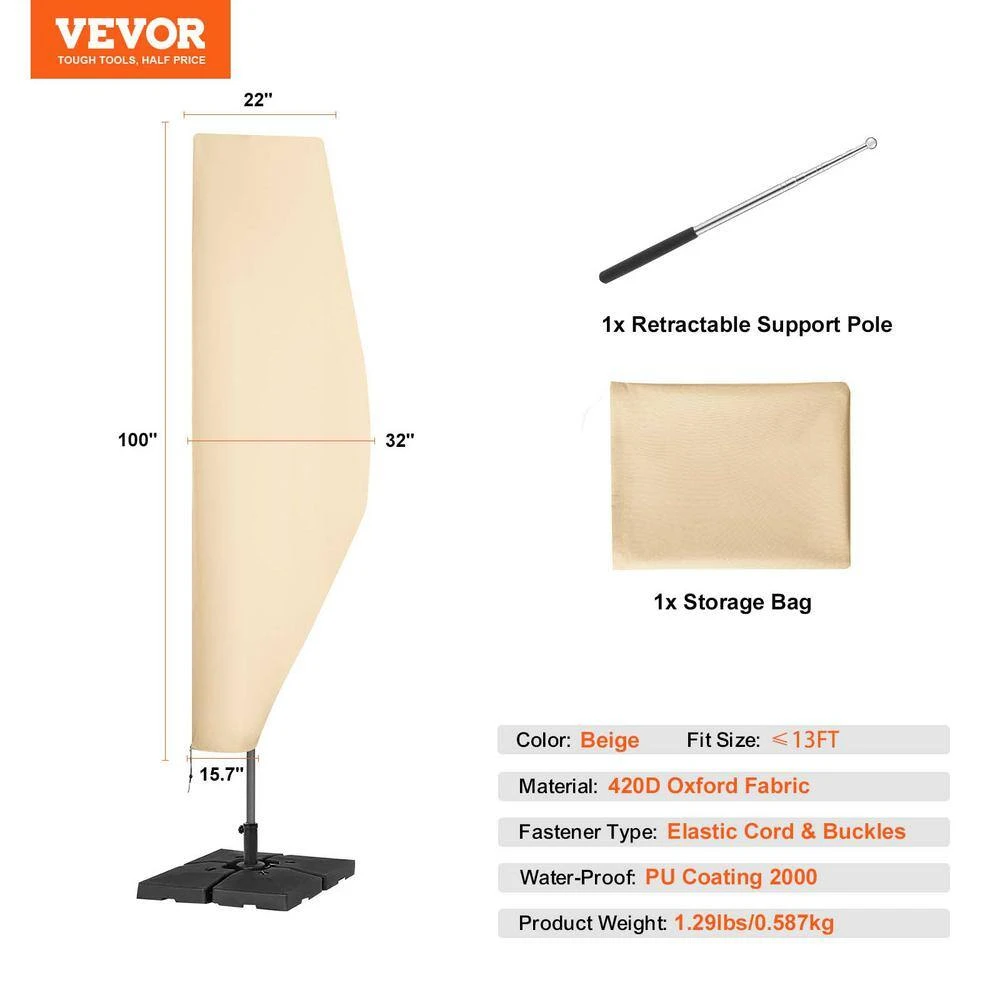 - Applicable size: this parasol umbrella cover is suitable for banana umbrellas up to 13 ft. in diameter warm tip: please measure your umbrella size before placing an order, 100% covered design to avoid sun exposure, so your umbrella is always as good as new