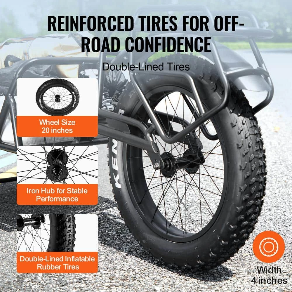 Carry More, Ride Farther with VEVOR Bike Cargo Trailer. Packed with strength, space and durability, this bicycle trailer is your ticket to hassle-free adventures. Stay safe, stay stylish and stay ready for anything, whether you’re hitting the trails or cruising the city streets. Let’s make every ride a blast.
