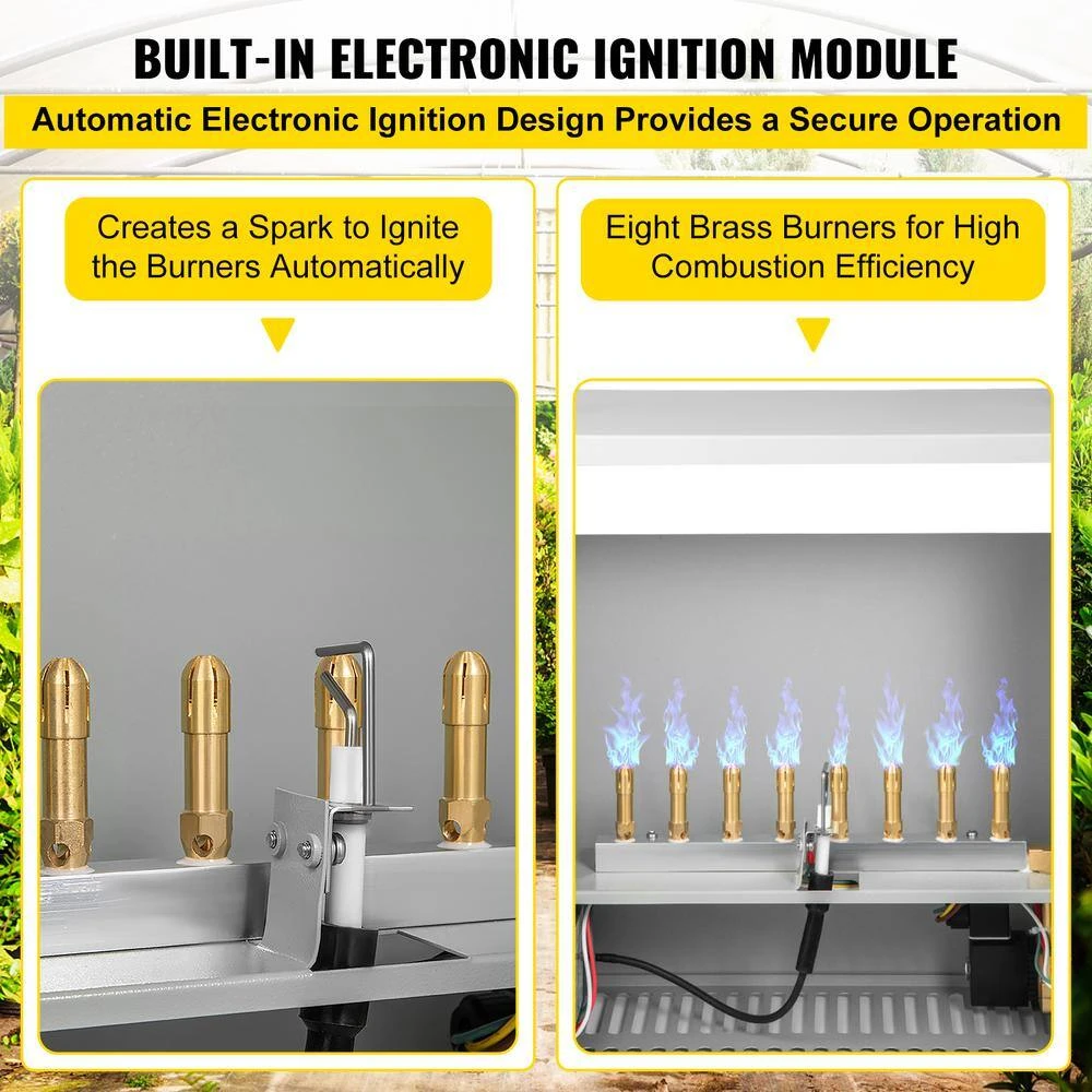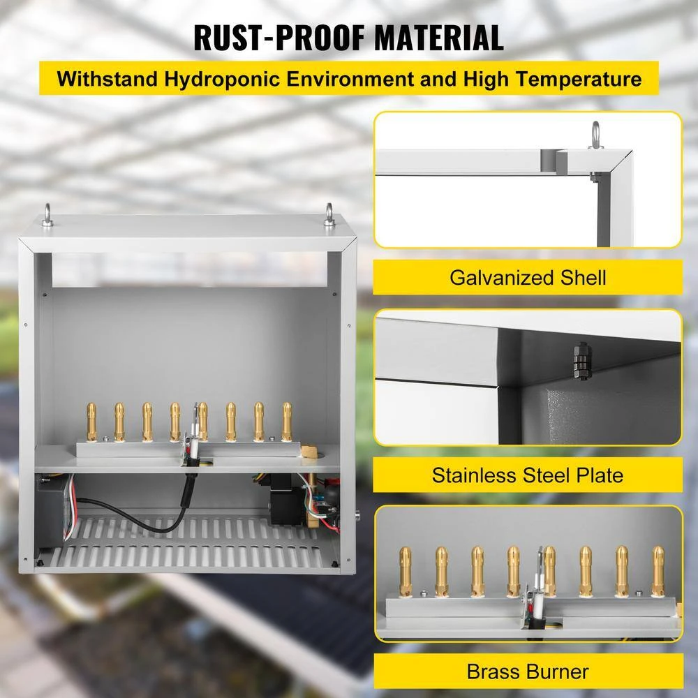 - Electronic ignition design: features automatic electronic ignition module, this CO2 generator for plants allows for instant lighting of the burners, eliminating open pilot flames, plus, the solenoid valve ensures the gas does not leak, providing an operation of both convenience and security