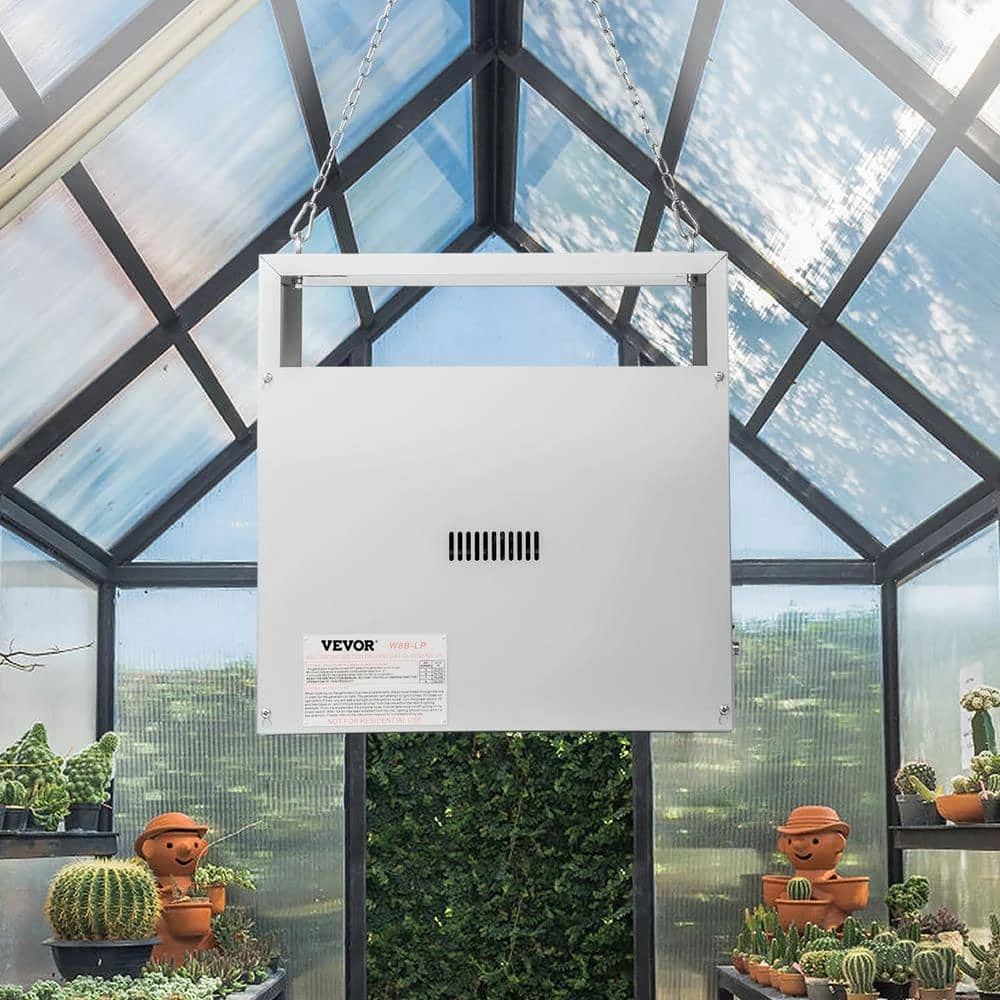 - Specifications: Model: W8B 8 Burner-LP, Power Supply: 110V AC, Fuel Type: Liquid Propane, Number of Burner: 8 Burners, BTU: 22352 BTU/hr, Material: Steel + Iron, Fuel Usage Amount (Each Burner): 0.075 kg/h, Yield of Each Burner: 3.47 cubic feet/h, Reductor Input Pressure: 25-250 PSIG, Greenhouse Area: ≤ 3200 cubic feet, Working Condition: 32℉-122℉/0℃-50℃, 0-95%RH, Storage Condition: 40℉-158℉/-40℃-70℃, Weight: 25.4 lb./11.5 kg, Size: 18.5in. x 11in. x 21.7in./47 x 28 x 55 cm