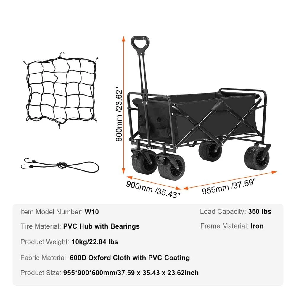 - Specifications: item model number: W10, load capacity: 350 lbs., fabric material: 600D Oxford cloth with PVC coating, frame material: iron, tire material: PVC hub with bearings, product weight: 10 kg/22.04 lb., product size: 955 in. x 900 in. x 600 mm/37.59 in. x 35.43 in. x 23.62 in.