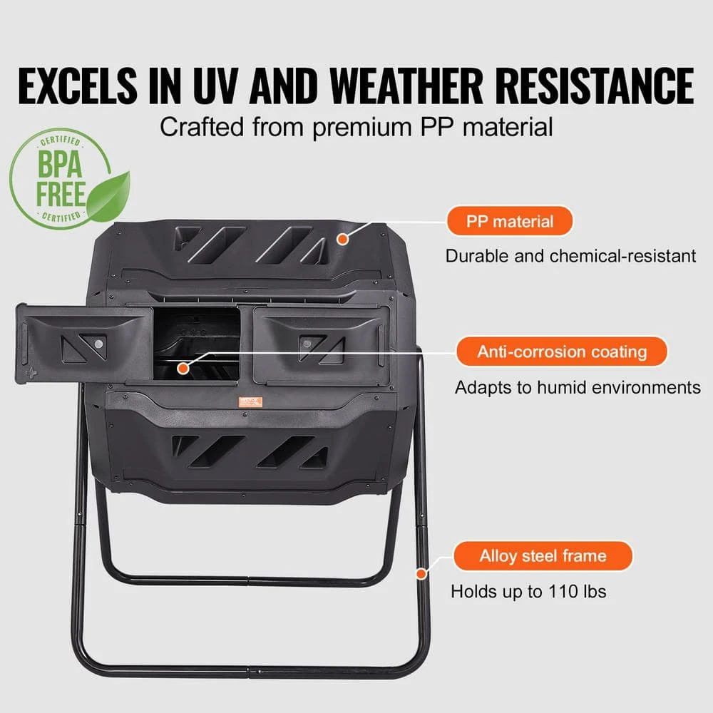- Built to last: crafted from high-quality PP materials and supported by sturdy metal components, our compost bin outdoor boasts a robust load-bearing capacity of 110 lb. they are BPA-free, UV-resistant and weatherproof, enduring direct Sunlight, typhoons, rain, snow and more