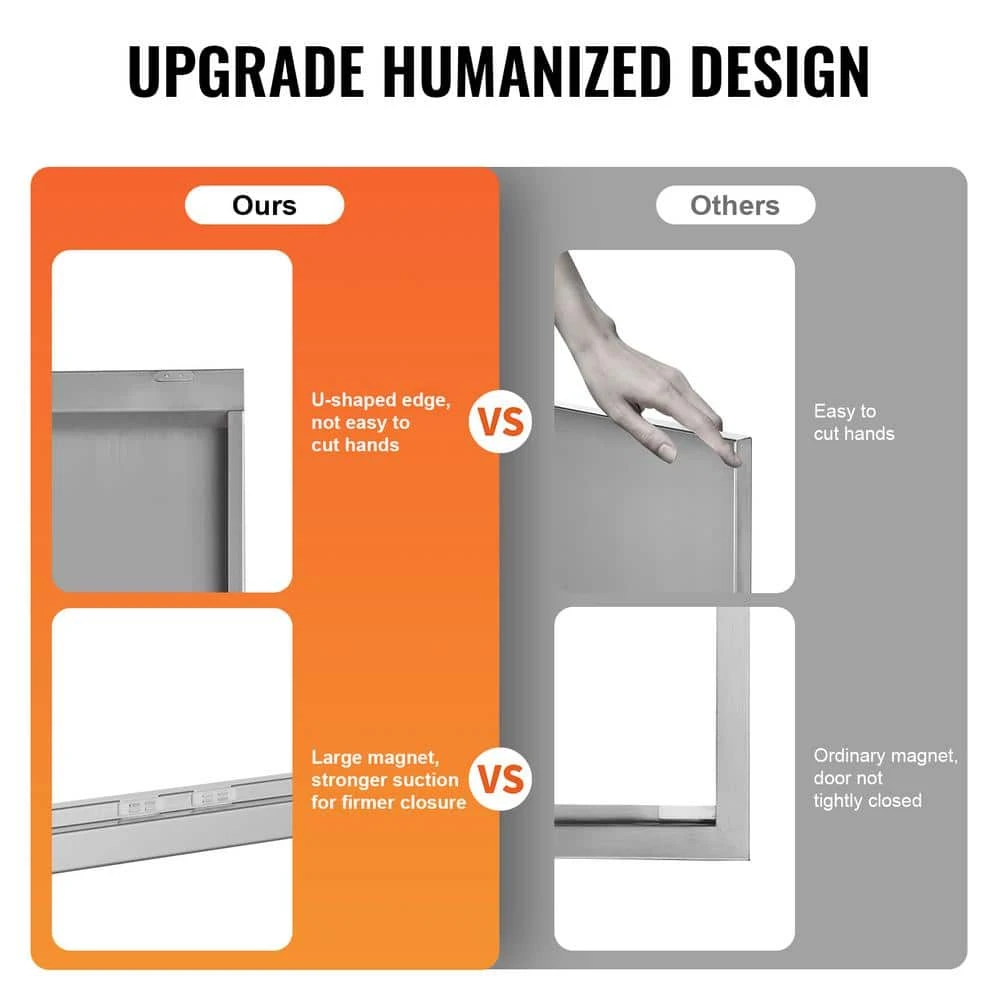 - Humanized design: featuring a hidden handle design, making the door look better and reducing the chance of accidental bruising, the door frame edges are bent and thickened for safer use, providing a more user-friendly experience, allowing you to enjoy cooking in your outdoor kitchen without worries