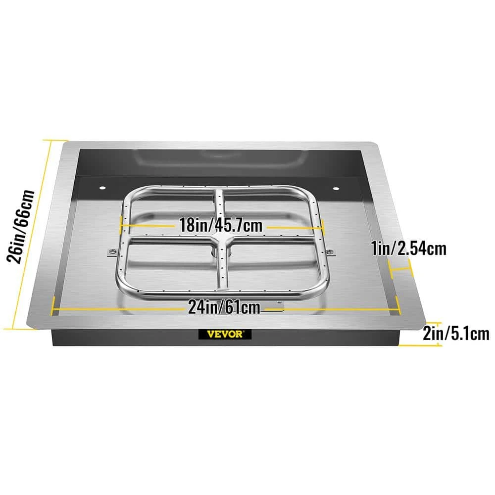 - Specifications:Model: VV-FXSKHP24IN,Inner Size: 24 x 24 in.,Material: Stainless Steel,Rated BTU Maximum: 150K,Inlet Size: 1/2 in. Internal thread,Fuel Type: Natural Gas / Propane,Product Size: 26 x 26 x 2 in.,Product Weight: 17.4 lb.