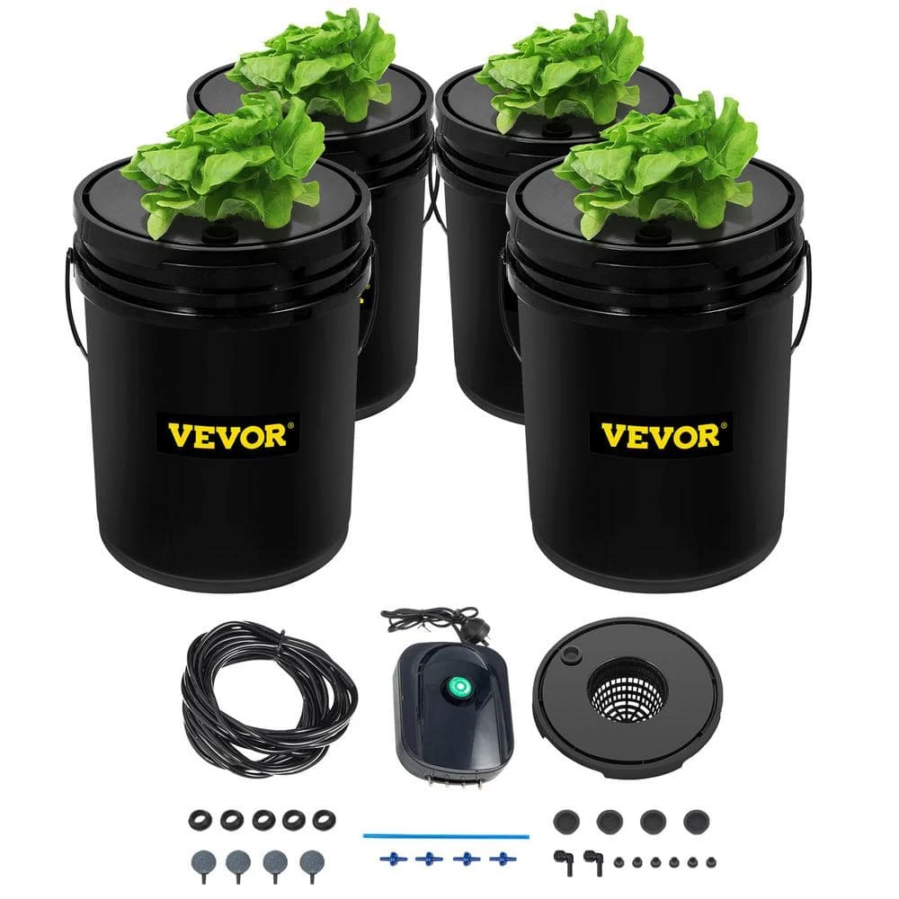 - Complete hydroponic grow kit: the DWC bucket system is easy to use with complete accessories, including 4 planting buckets, 1 reservoir bucket, 1.5 m water hose, 6 m air hose, 5 drain valves, 1 set of connectors, 1 water level device, 4 check valves, 4 air stones, 1 air pump, clay pebbles, and 1 instruction manual