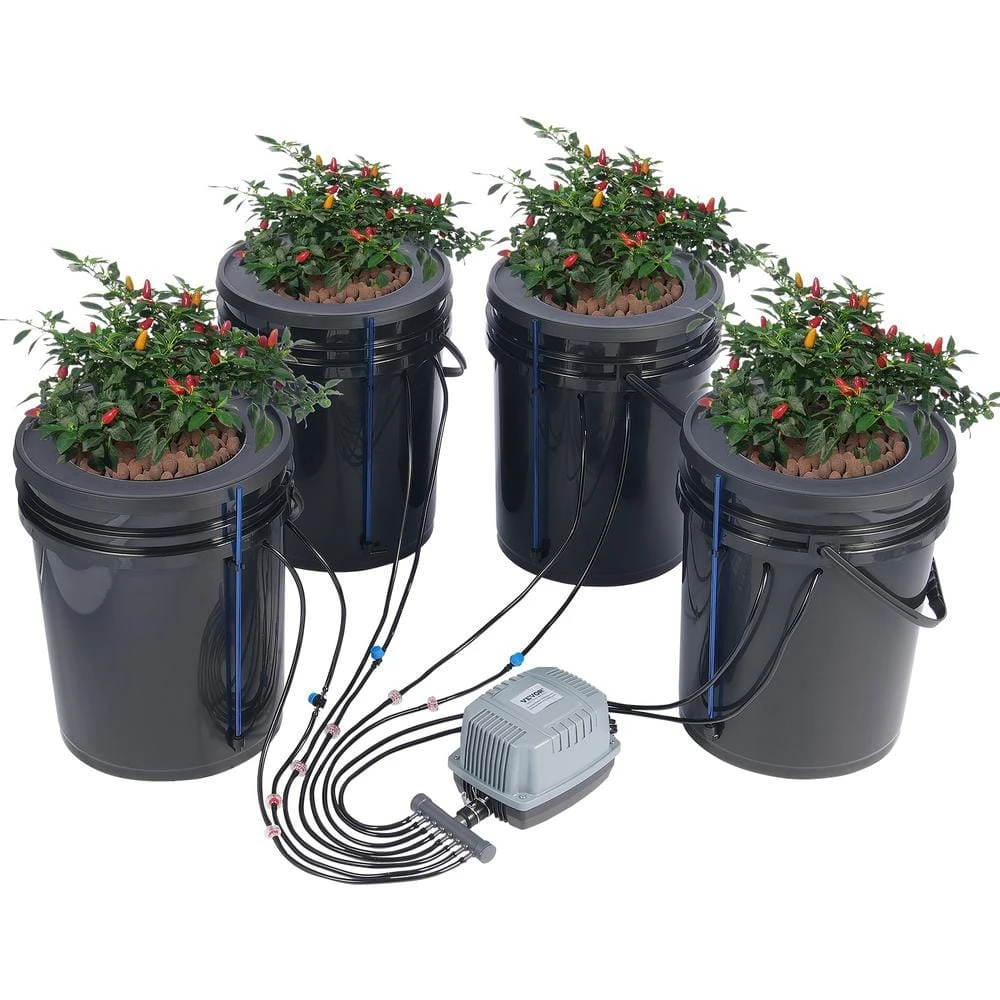Grow Various Vegetables, Fruits, Flowers and Crops Easily. Our DWC hydroponic growing system with top drip irrigation is water-saving and labor-saving. The powerful air pump and air stone provide sufficient oxygen for each bucket. It provides pre-cut water level tubes, check valve and sealing rings to prevent water leak.