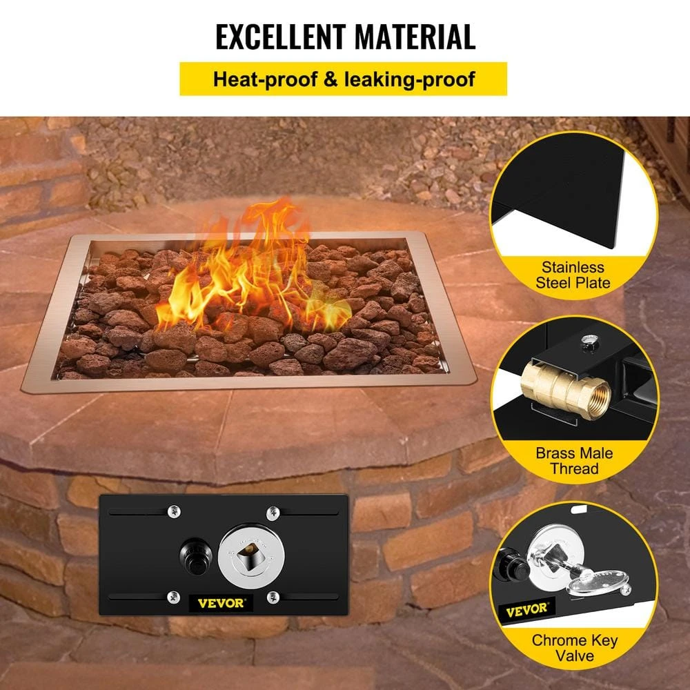 - Premium quality material: our fire pit igniter is constructed with a stainless steel panel, 2 PVC hoses, 2 brass male threads and a chrome key valve with a key, these high-quality components ensure high heat and leaking-proof, extend its service life and require very little maintenance