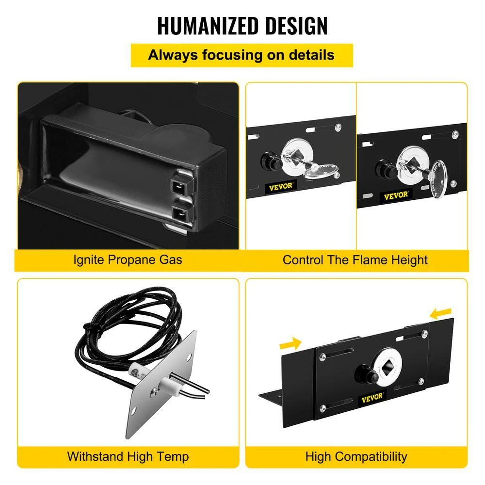 This VEVOR fire pit ignition system adopts heat-proof and leak-proof materials and has a max 300k BTU capacity, improving propane combustion efficiency. It is equipped with an on-off key valve for cutting off gas, 2 PVC hoses for kits connection, a push-summary igniter and the leads and ground wires. This fire pit valve igniter is easy to install with clear guidance and is the best option for igniting the propane gas for your fit pits.