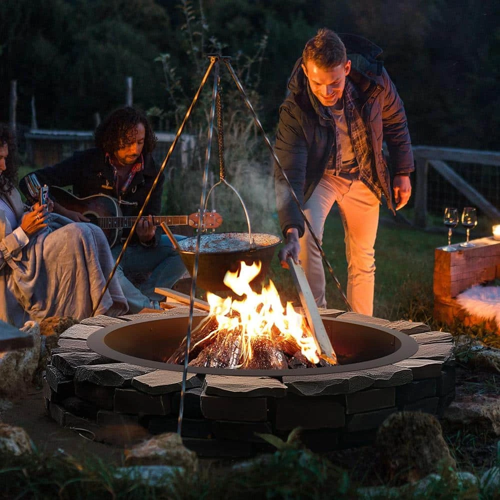 - Large size: the outer diameter is 40 in, (1,016 mm), inner diameter is 36 in, (914.4 mm), height is 8.5 in, (215.9 mm), and thickness is 0.06 in, (1.5 mm), providing ample external space to accommodate more firewood and charcoal, ensuring better airflow to facilitate thorough burning and ignite the campfire
