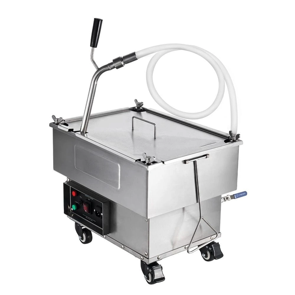 - Safe & Convenient Operation: We’ve got your back with security features like a 1.8 m long, heat-resistant hose (made of silicone, stainless steel mesh, and PTFE), an anti-scalding, non-slip handle, and a stainless steel cover to prevent oil splashes. With 4 swivel casters (2 of which can be locked) and a long handle, moving your fryer oil filter around is a piece of cake