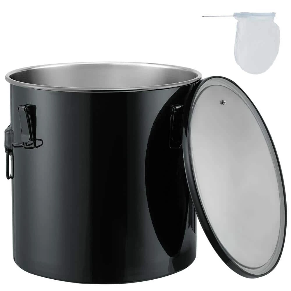 - Massive 8-Gal. capacity: with dimensions of 14.8 in. / 375 mm in Dia and 14.4 in. / 365 mm in height this fryer grease bucket packs a punch, Say goodbye to frequent trash can emptying-it can hold up to 8 gallons of oil, Plus, we’ve thrown in a nifty filter bag to sift out any pesky impurities, keeping your oil fresh and clean for longer