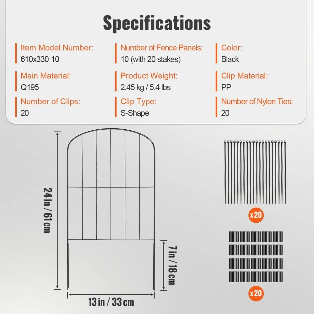 Garden Fence No Dig Fence 24 In. H X 13 In. L Animal Barrier Fence Garden Fencing With 2 In. Spike Spacing, (10-Pack)