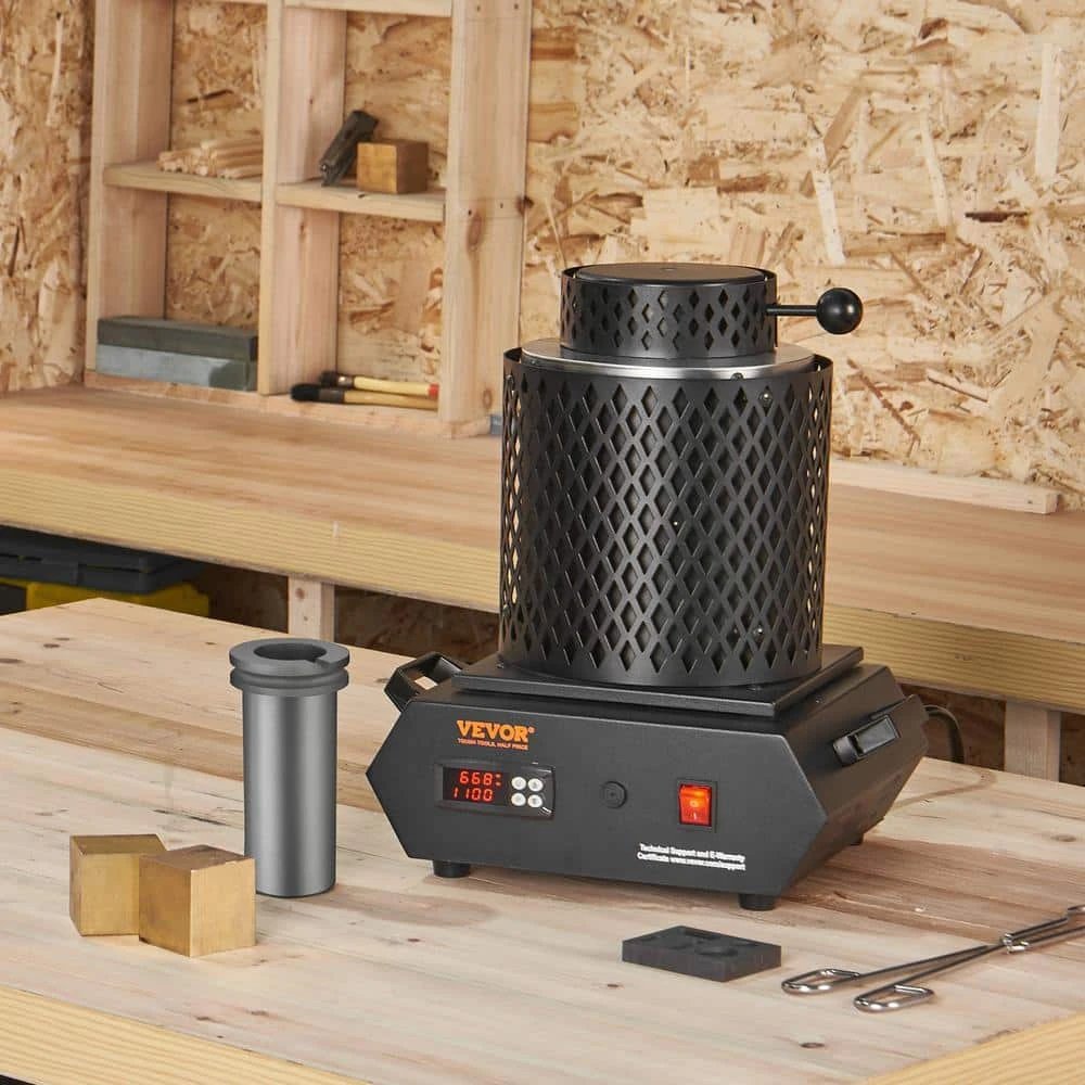 VEVOR Electric Melting Furnace: Easily Refine and Recast Old Jewelry.VEVOR Electric Melting Furnace is crafted from high-quality materials to ensure safety, stability, and no spills. The intelligent PID digital control system monitors and adjusts the actual temperature accurately. With 1350W of power, it quickly heats through electromagnetic induction. Optimized heating elements and insulation materials enhance heating efficiency, melting metals with a melting point below 1150°C in 40-55 minutes. Ideal for DIY gold bars, commemorative coins, or jewelry making, suitable for professionals or home use.