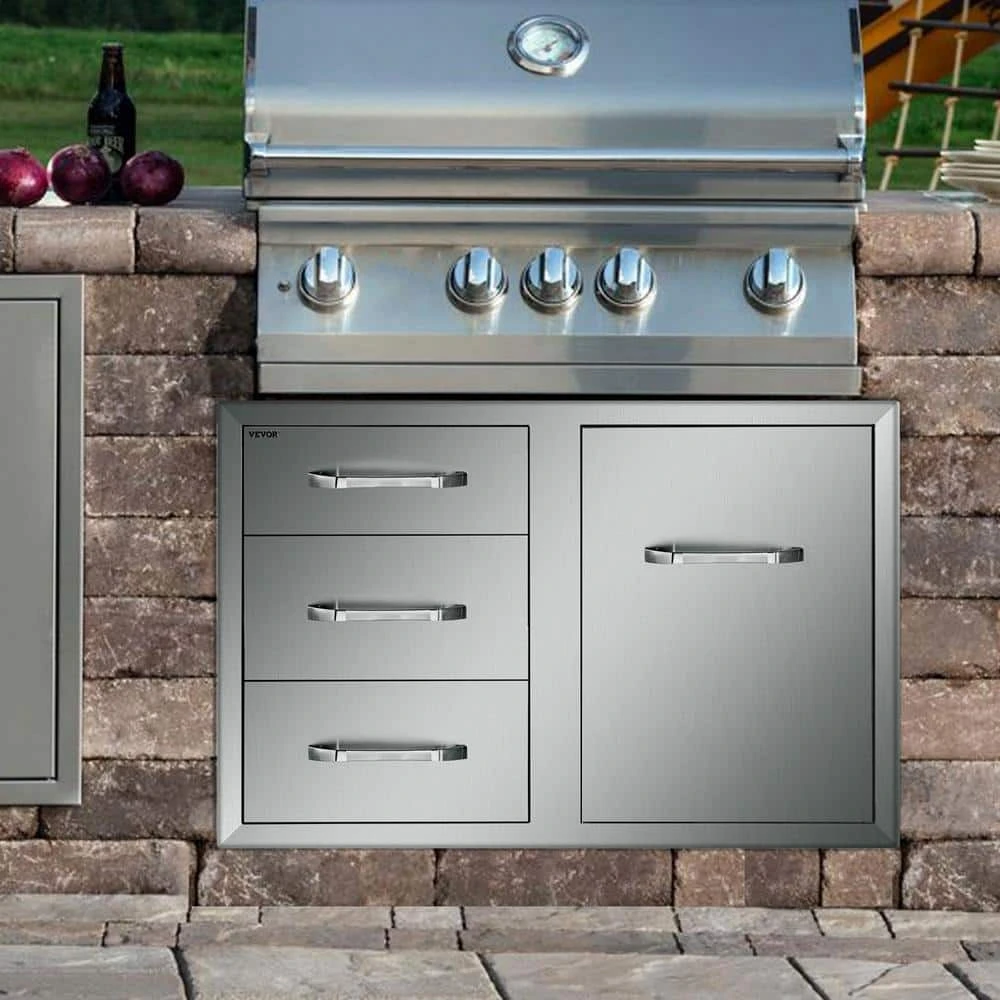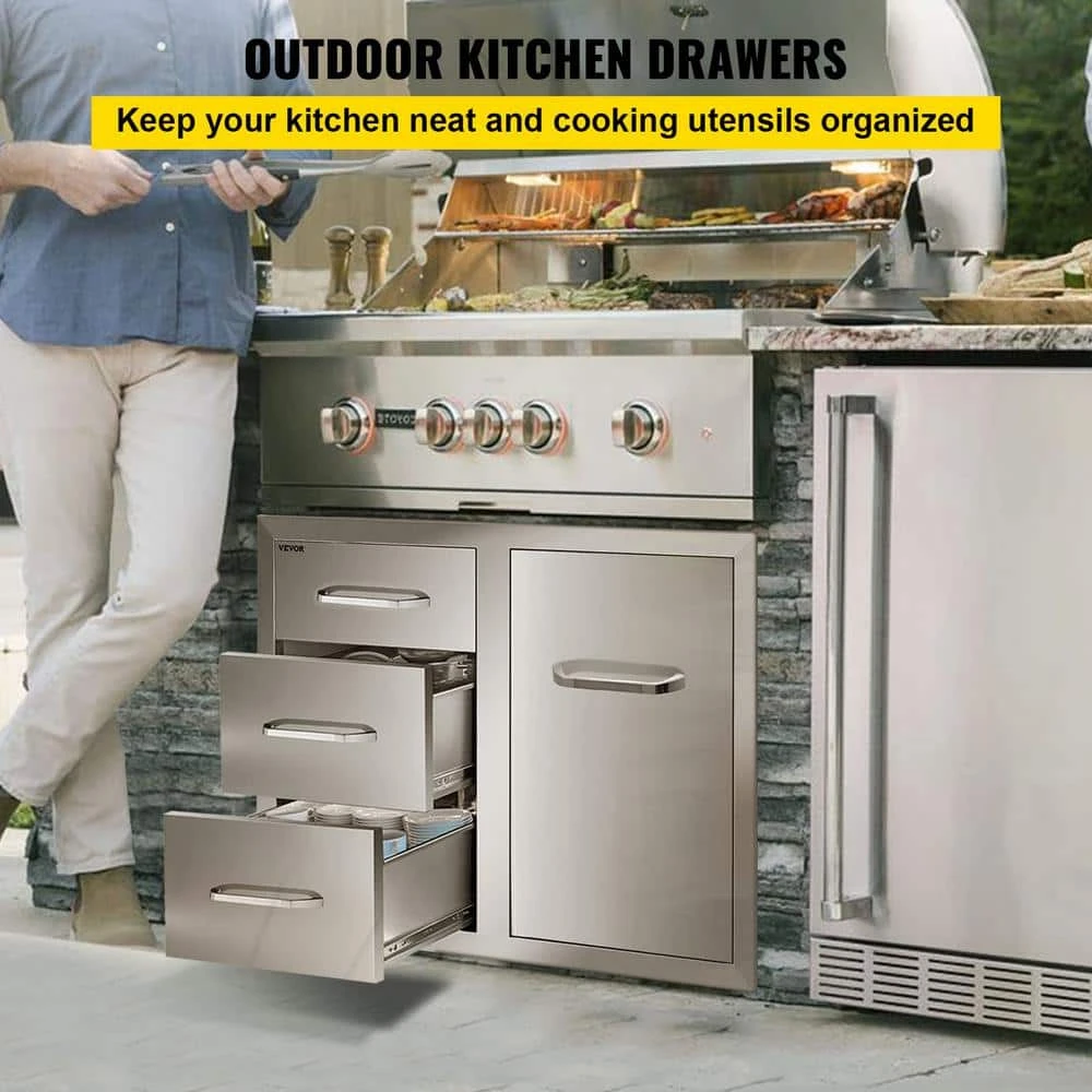 If you are looking for drawers & door combo, the VEVOR drawer is a good choice for your BBQ island. Our outdoor BBQ drawer is constructed of stainless steel, waterproof and corrosion-proof. The large drawer provides an incredibly convenient place to store all of your kitchen tools. Our smooth sliding rails have low noise and ensure your cooking materials do not collide with each other. Take control of your backyard kitchen with our drawers and enjoy every occasion.