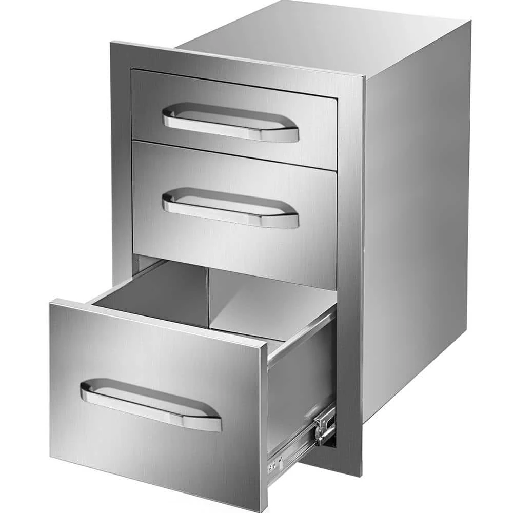 - Large Storage Coverage: The overall size for our outdoor kitchen drawer is 14.8 in. W x 21.2 in. H x 22.6 in. D, cutout size: 13.2 in. W x 19.6 in. H x 23 in. D. It provides spacious storage space for you to keep everything organized. You will have a clean and neat kitchen, all thanks to these triple-layer drawers