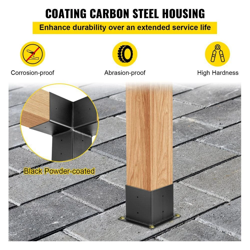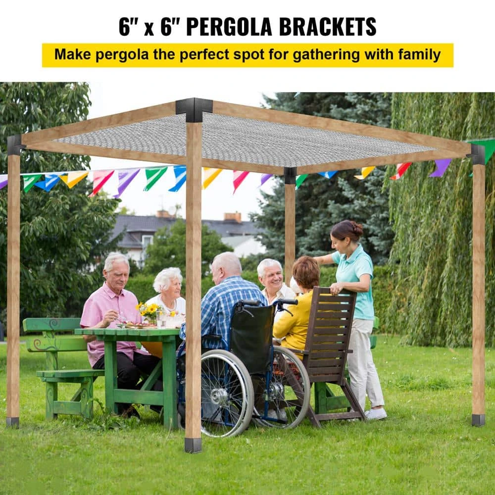 Pergola Bracket Kit. Fit for Standard 6 in. x 6 in. Brackets, Indoor and Outdoor Usage and Full Accessory. Our VEVOR carbon structural pergola kit steel brackets provide 4 bracket shoulders and 4 bracket boots which possesses scratchproof and rustproof function. In addition 3way right angle corner and half-closed box design enhance the durability and pergola and the 0.1 in. thickness steel plate has been sandblasted and powder coated. And such high-quality brackets will help you build a stable pergola.