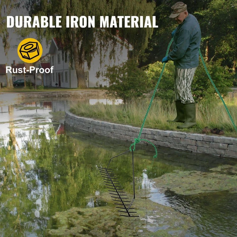 With VEVOR wide enough weed rake, you can clean your pond, lake and pool efficiently and conveniently. Sturdy iron material and solid construction ensure long service life. Net bag and rope are provided for your convenient usage. It is a great helper for you to get a neat water environment.