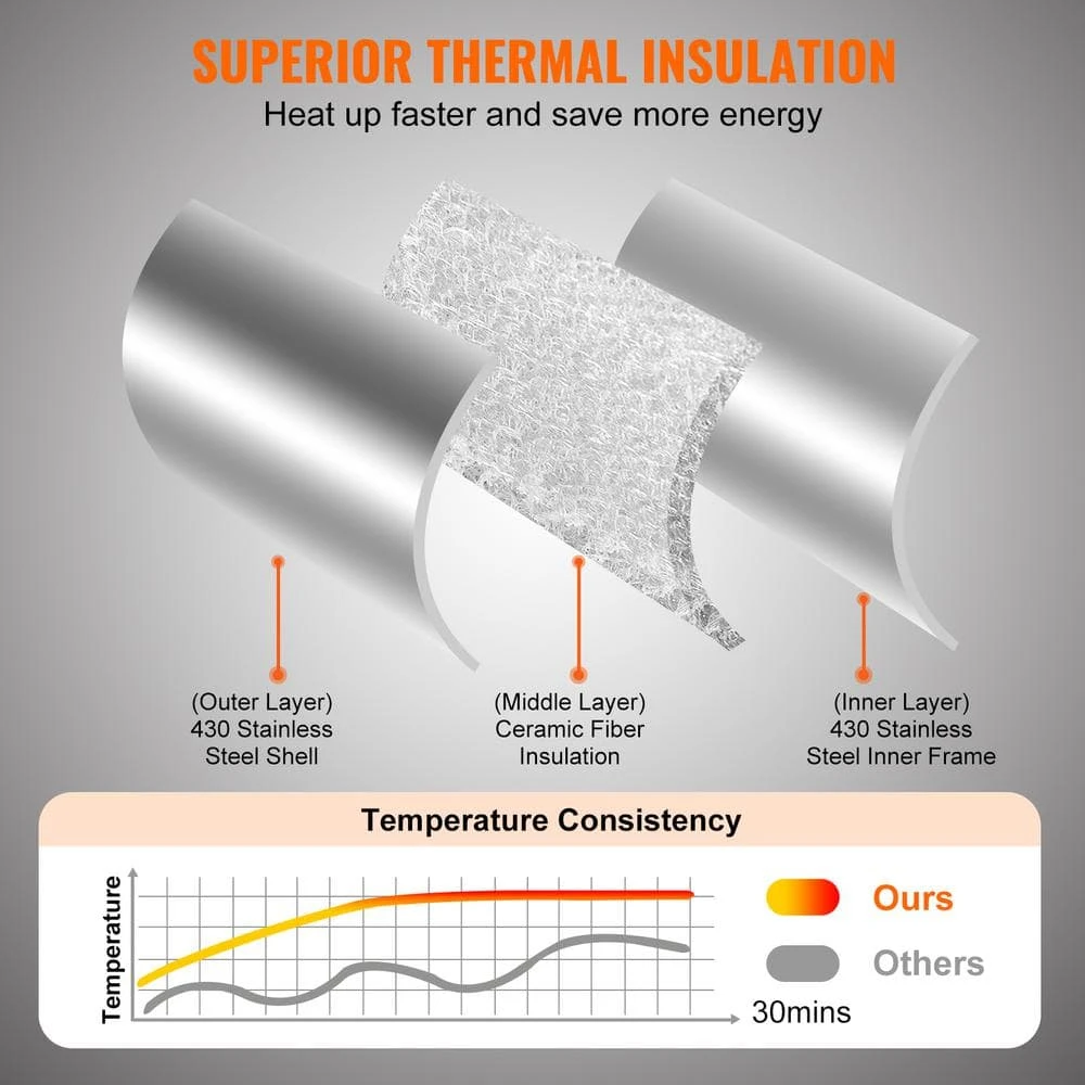 - Insulating material: ceramic fiber insulation cotton placed between double-layer insulation materials in the oven ensures more even heat distribution, reduces heat loss, promotes faster heating and achieves higher temperatures