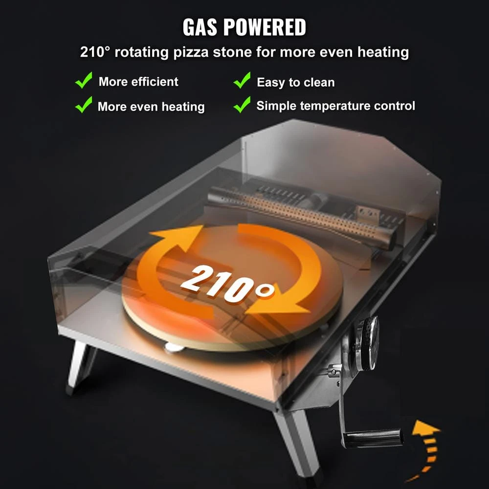 - Gas powered: gas-powered pizza oven with knob control for ignition, offering higher efficiency and convenience, no need to handle fuel waste, clean and easy