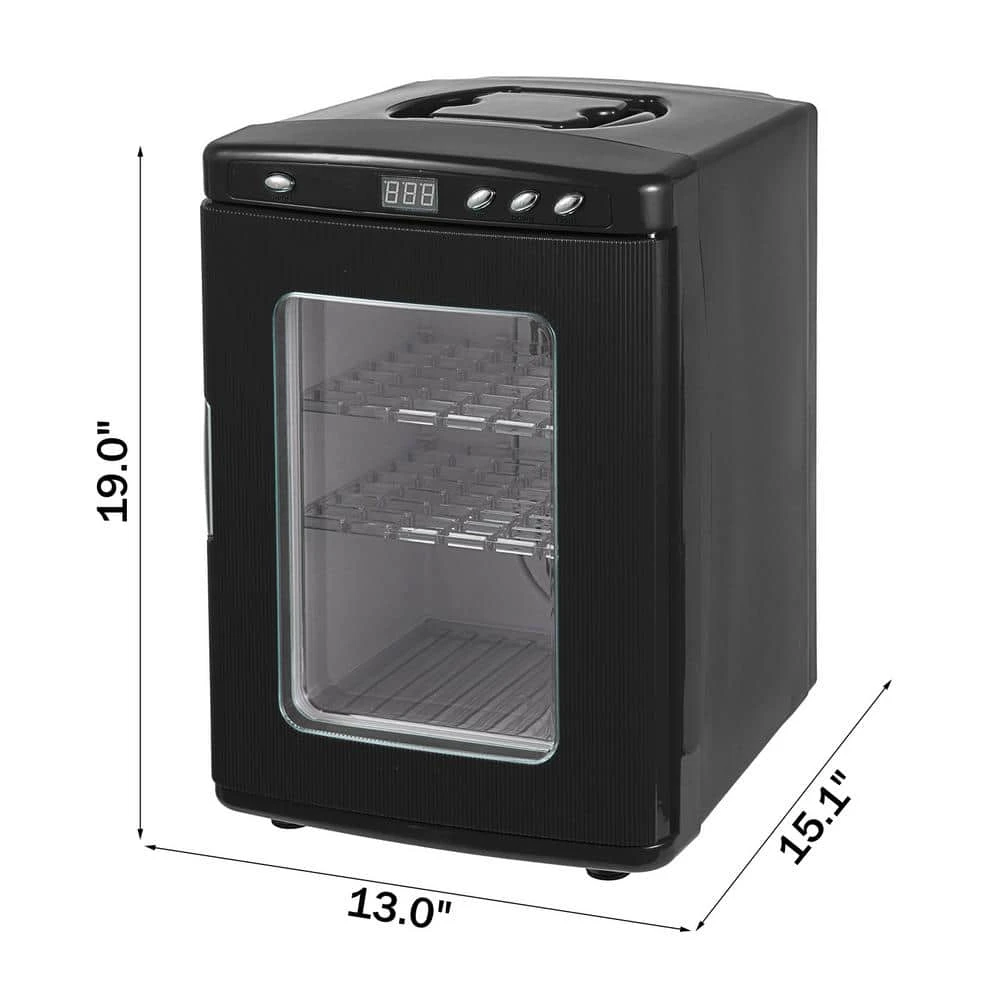 The VEVOR incubator functions as both a cooler and a warmer by means of a thermoelectric (Peltier) system. Its interior volume is 25 Liter and can accept bottles and flasks up to 2 Liter. Two removable shelves create 3 platforms. The desired temperature is set on the digital LED display and the incubator immediately starts heating or cooling, while accurately monitoring the temperature inside and displaying it on the LED panel.