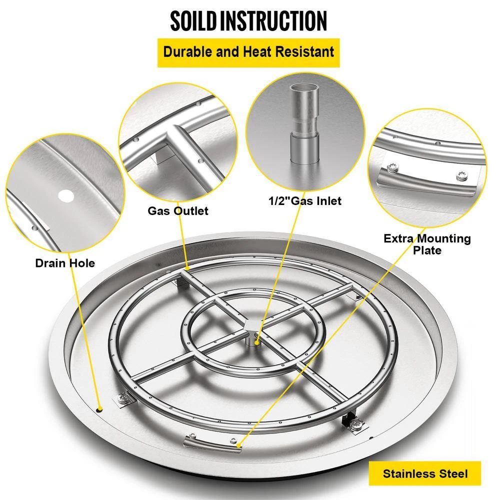 Our VEVOR fire pit pan allows you to enjoy enough warmth indoors or outdoors. We provide you with a large burning area, solid stainless steel, drainage holes, complete accessories and so on so that you can better utilize the drop in fire pit. It can not only bring you warmth but also become a beautiful decoration under your design.