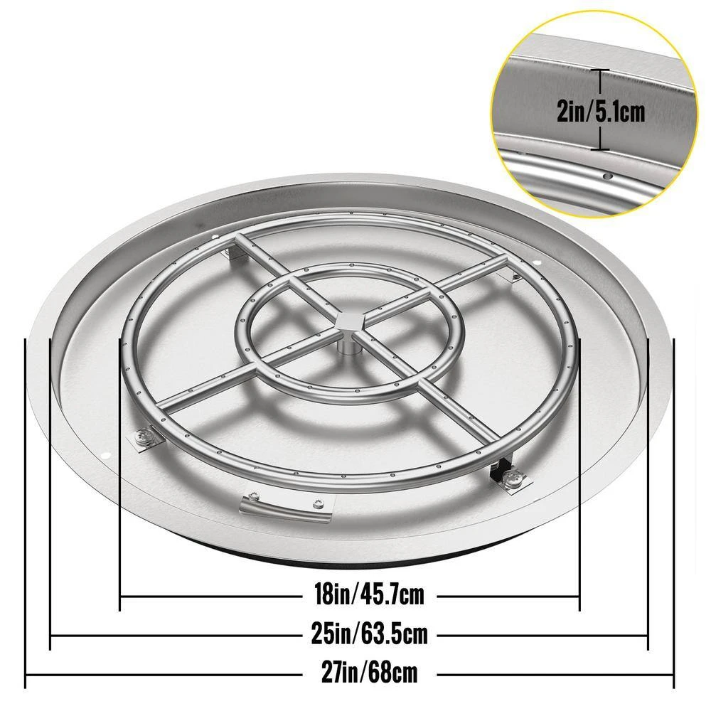 - Superior Fire Pit Pan: Drop in fire pit pan’s fire pit plate and burner is made of stainless steel, which can withstand high temperature and bad weather, built-in drainage hole to keep ponding, it is very suitable for heating in the courtyard or by the swimming pool