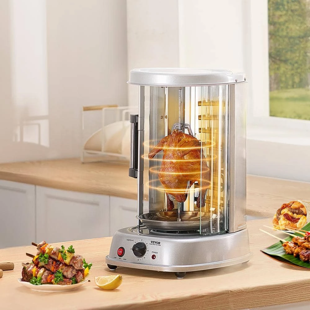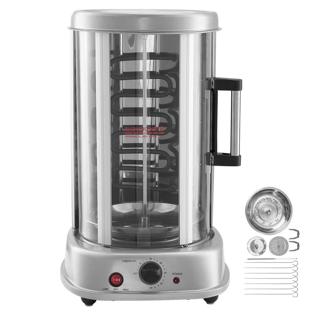 - 360° automatic rotation: the shawarma grill machine features a 360° automatic rotation function and a curved glass door to ensure even heating the rotating design helps keep the meat juicy, delivering delicious results