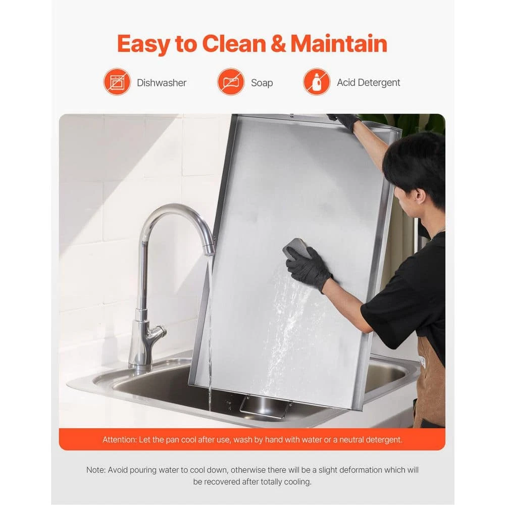 - Specifications:Item Model Number: HH-SP005,Color: Original Steel Color,Material: Stainless Steel,Temp. Resistance: Max500°F / 260°C,Cooking Area: 36in.x21in. / 910×525 mm,Product Weight: 22 lbs. / 9.86 kg ±5 %
