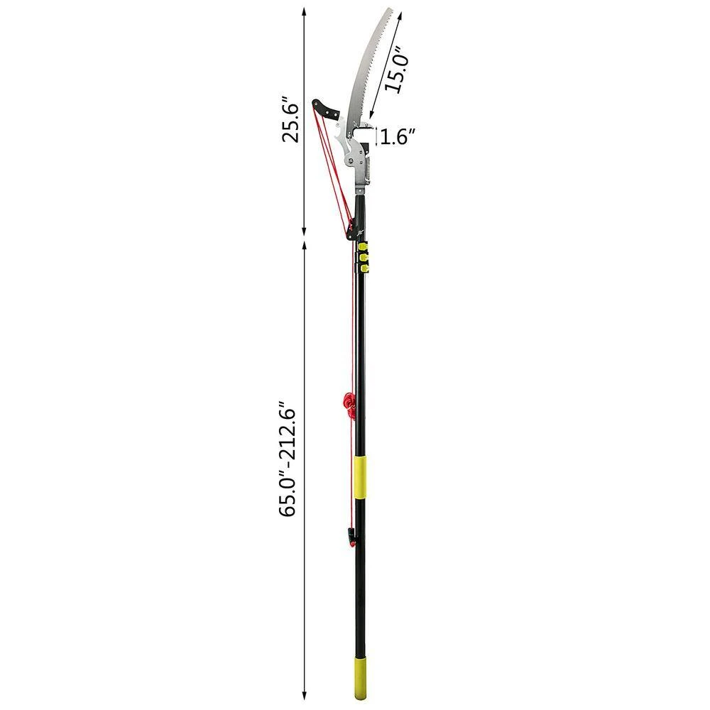 - Adjustable aluminum pole: 17.7 ft. coated saw blade conveniently attaches to pruner without climbing. collapses to half its size for storage and portability when the work is done
