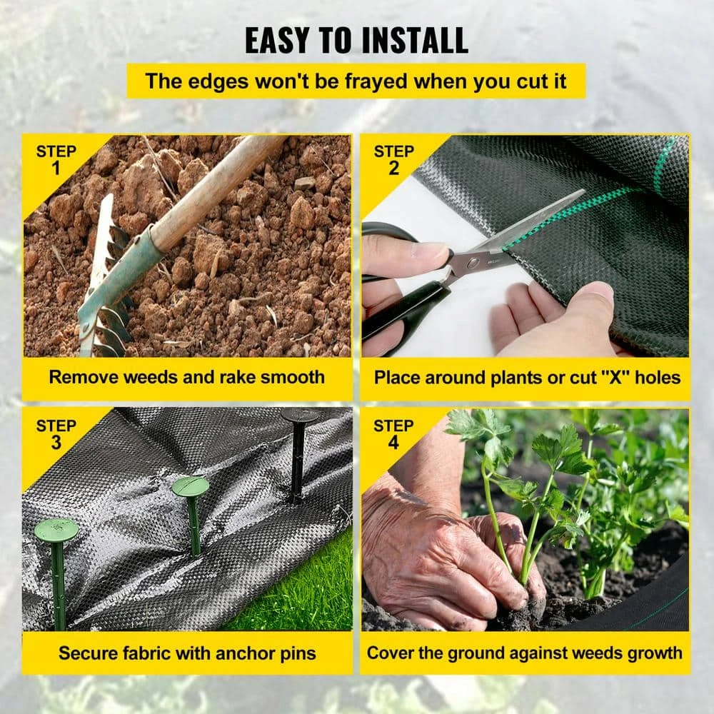 - Easy Installation: Our garden cloth weed barrier is effortless to cut and install. It is convenient to DIY the cloth size and shape to meet your different needs. The garden weed cloth also features green stripes for easy plant alignment. (Installation tools are not included.)