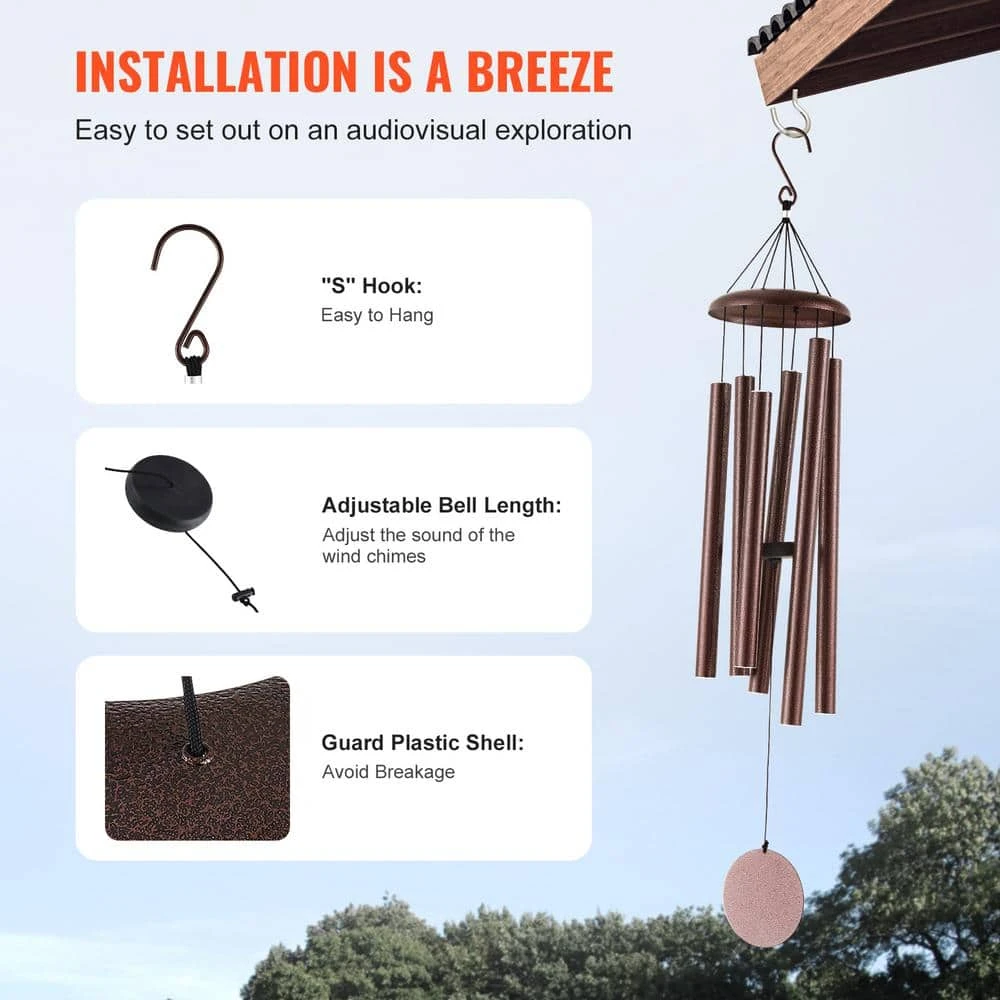VEVOR 45 in. Deep Tone Wind chimes, Beautify Your Life. Featuring a 45 in. large black metal design, our wind chimes for outside include 6 aluminum tubes that emit a subdued D major melody. Suitable for garden, balcony, patio, and home decor, it’s an ideal choice for Mother’s Day or Christmas for your beloved.