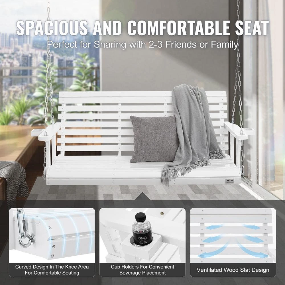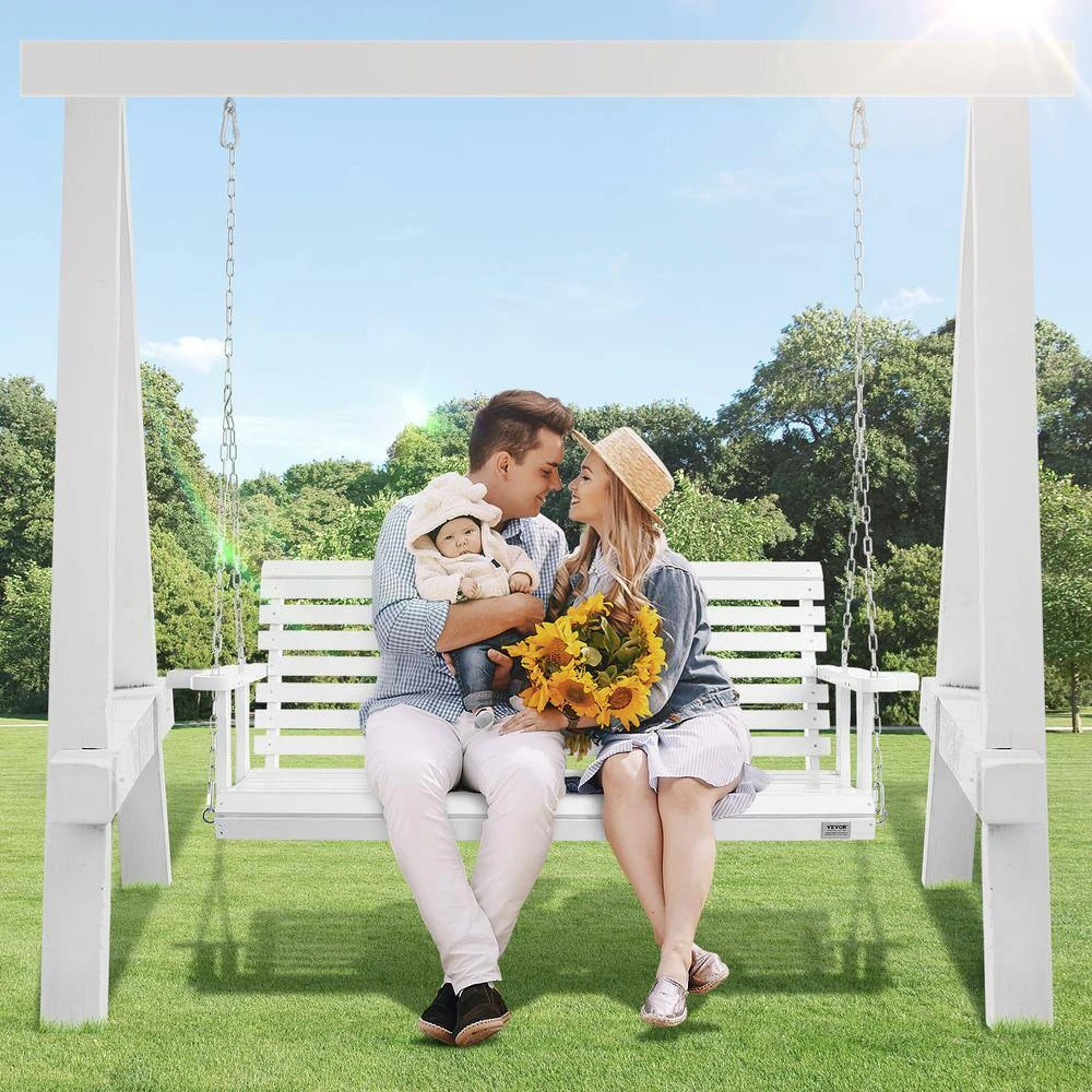 VEVOR Porch Swing: Experience Comfortable Leisure. Pure fir wood, triple PU paint coat for waterproofing, our porch swing is supported by steel chains for safety and stability. Easy installation with a variety of accessories allows you to quickly set it up in your yard, porch, or patio. Come and start your joyful journey.